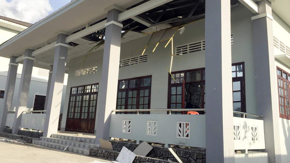 Hội trường 250 chỗ bất ngờ sập mái chỉ sau tám tháng bàn giao đưa vào sử dụng. Ảnh: CHÂU ANH