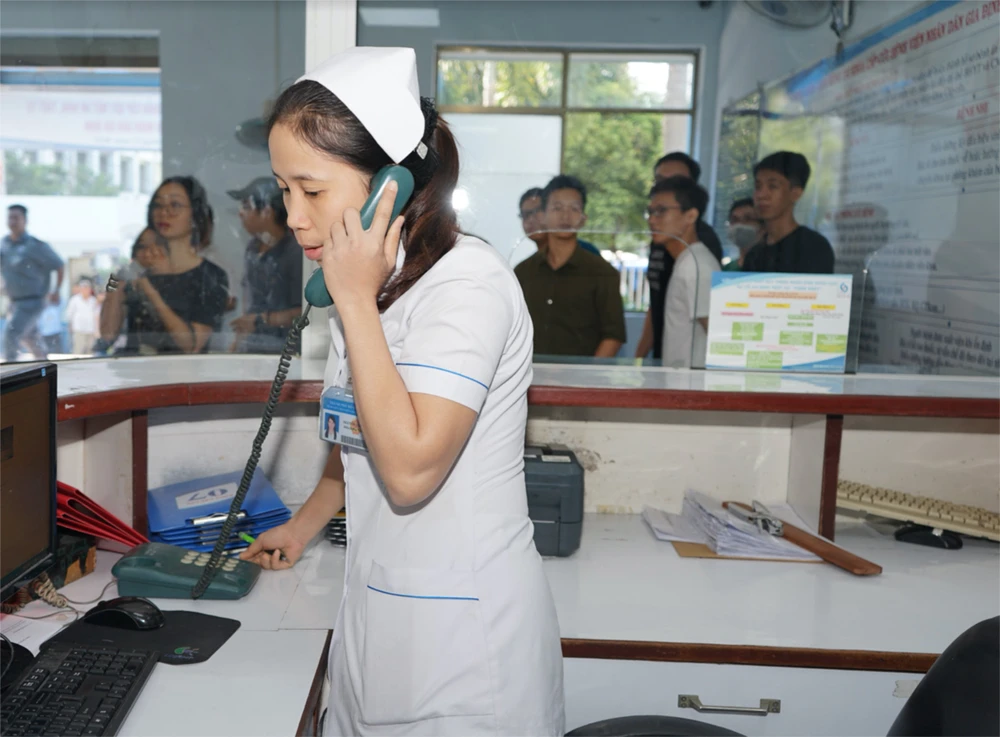 Điều dưỡng gọi điện thoại kích hoạt báo động “Code grey” để xử lý sự cố an ninh trật tự tại Bệnh viện Nhân dân Gia Định, một đề cử lọt top bình chọn đề cử giải thưởng "Thành tự Y khoa Việt Nam". Ảnh: SYT