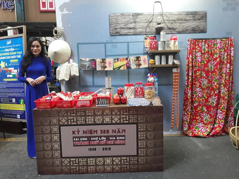 Tiểu cảnh Sài Gòn xưa tái hiện tại đường sách để du khách chụp ảnh. Ảnh: HÒA BÌNH