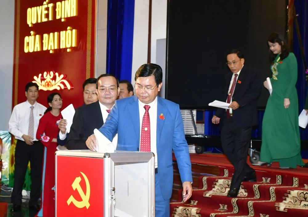 Bỏ phiếu bầu Ban Chấp hành Đảng bộ tỉnh khóa XVI. Ảnh: BTC cung cấp