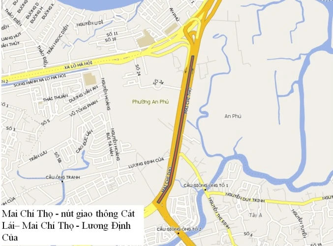 Có khoảng 600mét đường được cào bóc, thảm lớp bê tông xi măng dày 46cm để chống lún. Trong thời gian thi công, làn đường ô tô khu vực Mai Chí Thọ → Lương Định Của → Nguyễn Thị Định sẽ bị chiếm toàn bộ. Nên lộ trình thay thế là: Mai Chí Thọ → nút giao Cát Lái (hoặc giao lộ Mai Chí Thọ - Đồng Văn Cống) → vòng ngược lại Mai Chí Thọ → Lương Định Của (hoặc Nguyễn Thị Định).