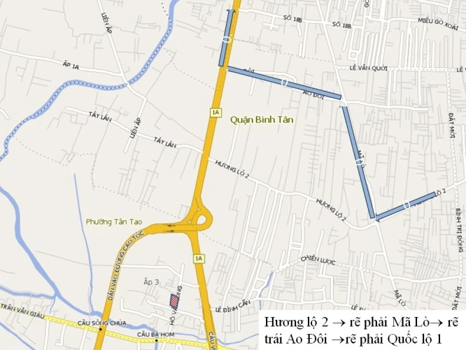 Trong thời gian thi công (dự kiến kết thúc vào ngày 10-3-2015) dãy phân cách tại giao lộ này sẽ bị đóng lại và các loại xe sẽ không thể từ đường Tây Lân băng ngang quốc lộ 1 để vào hương lộ 2 và ngược lại.