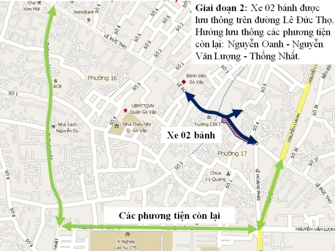 - Hướng đi từ Thống Nhất đến Nguyễn Oanh (hoặc Lê Hoàng Phái) là: Thống Nhất → Nguyễn Văn Lượng → Nguyễn Oanh (hoặc đường Lê Hoàng Phái).