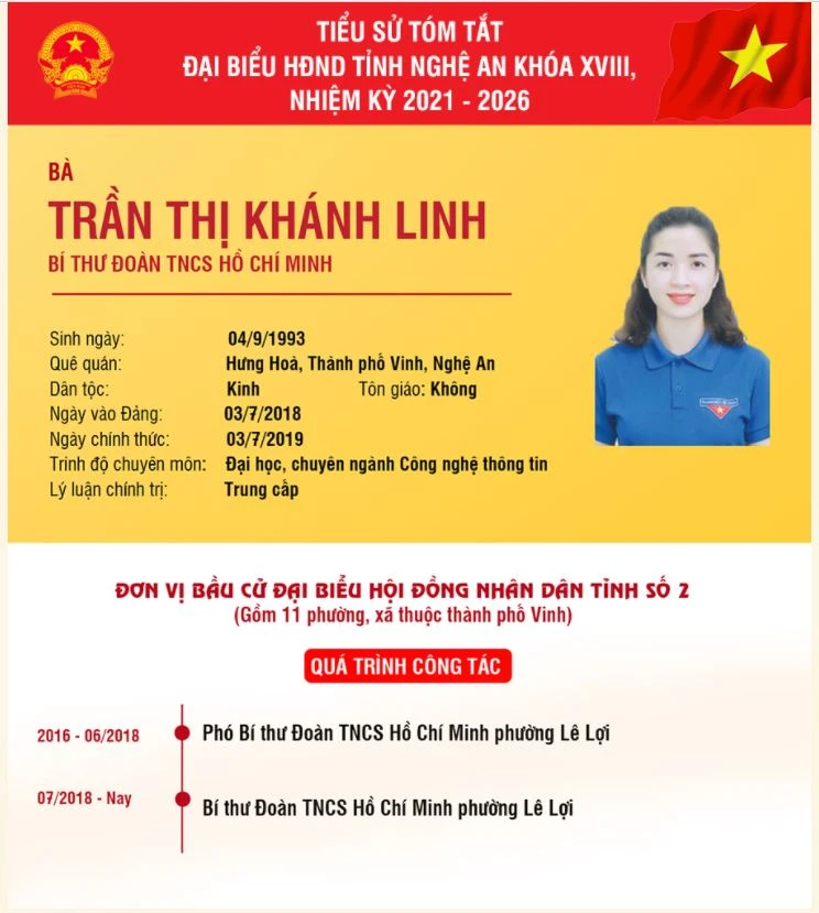 Đại biểu trẻ- chị Trần Thị Khánh Linh trúng đại biểu HĐND tỉnh Nghệ An nhiệm kỳ 2021-2026.