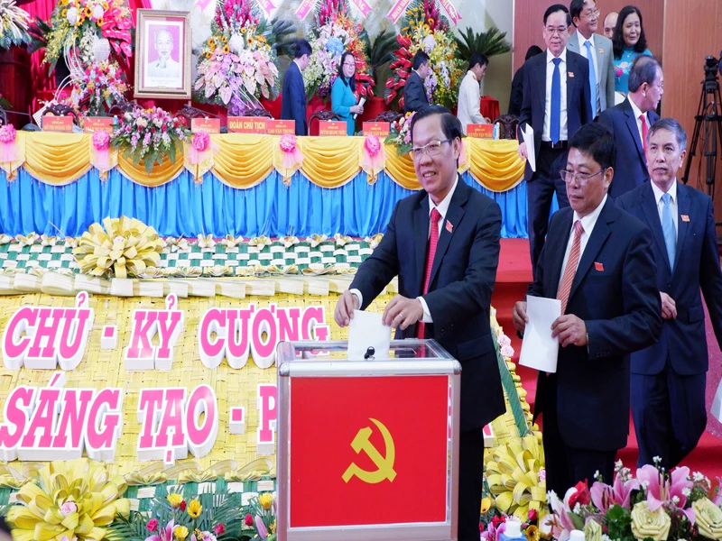 Ông Phan Văn Mãi bỏ phiếu bầu cử Ban chấp hành tại Đại hội. Ảnh: Đ.H