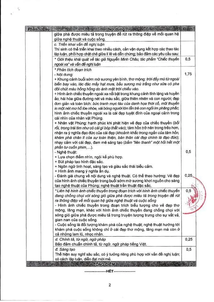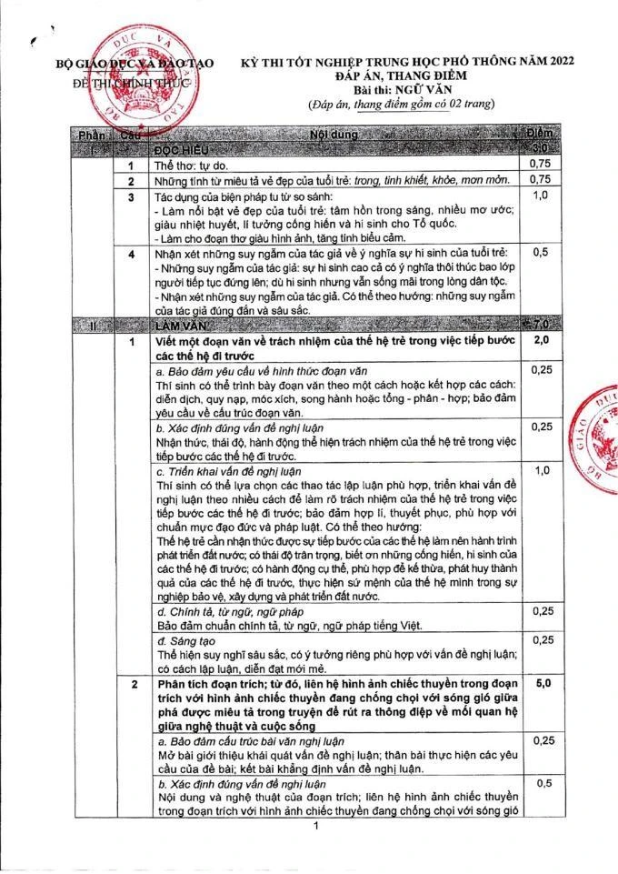 Đáp án, thang điểm như sau: