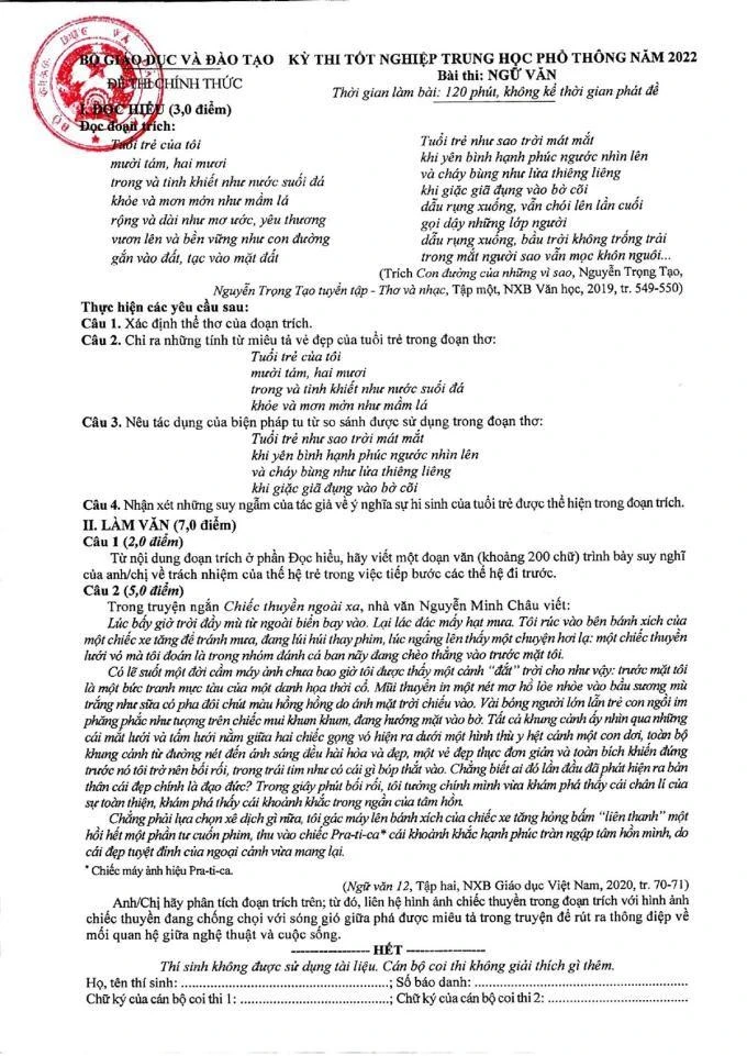 Ngữ văn là môn duy nhất thi dưới hình thức tự luận ở Kỳ thi tốt nghiệp THPT. Số lượng làm bài thi Ngữ văn ở Kỳ thi năm nay là gần 981.600 thí sinh.