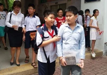 Các thí sinh vui vẻ sau buổi làm bài khảo sát vào lớp 6 ngày 20-6 vừa qua.