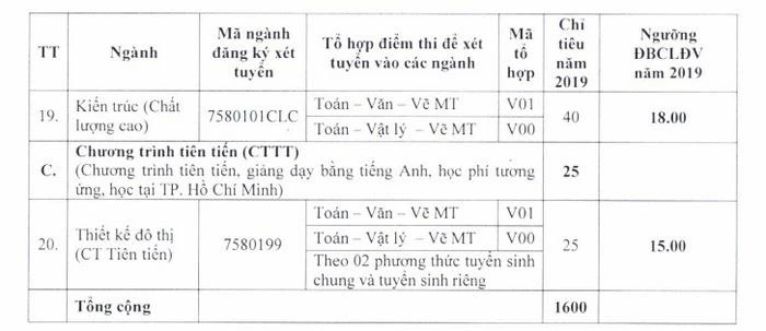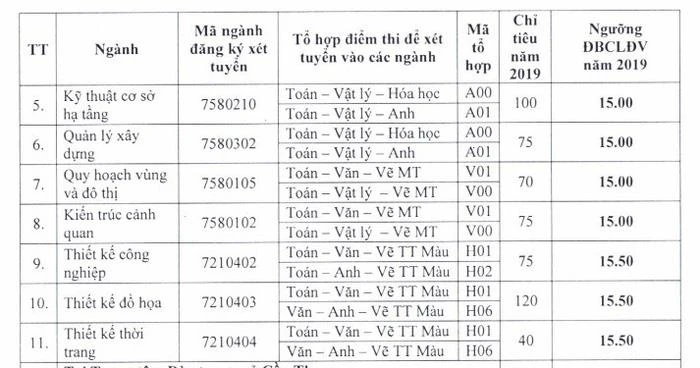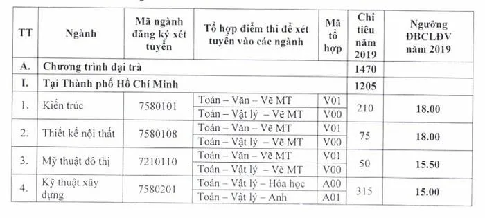 Cùng ngày, Trường ĐH Kiến trúc TP.HCM cũng đã công bố ngưỡng điểm nhận hồ sơ xét tuyển vào các ngành đào tạo của trường năm 2019.