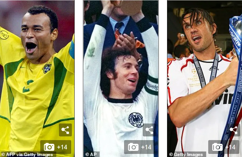 Bộ ba hậu vệ Cafu, Beckenbauer và Maldini. ẢNH: GETTY