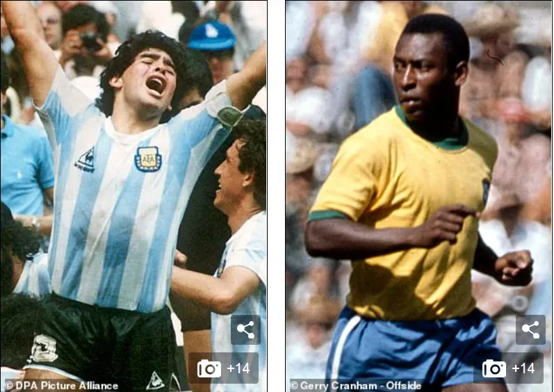 Maradona và Pele cực kỳ vĩ đại. ẢNH: DAILY MAIL