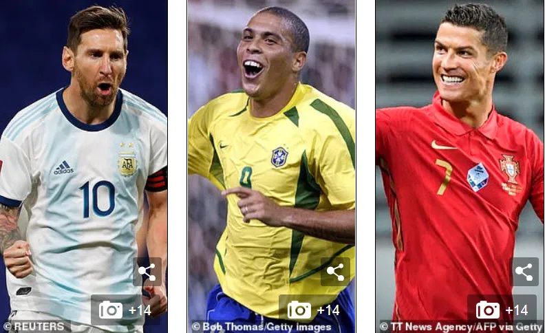 Bộ ba hàng công Messi, Ronaldo và... Ronaldo. ẢNH: DAILY MAIL