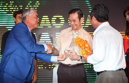Cựu danh thủ Tam Lang với chiếc cúp “Vinh danh Fair Play” - phần thưởng trọn đời trong lễ trao giải năm 2012. Ảnh: XUÂN HUY