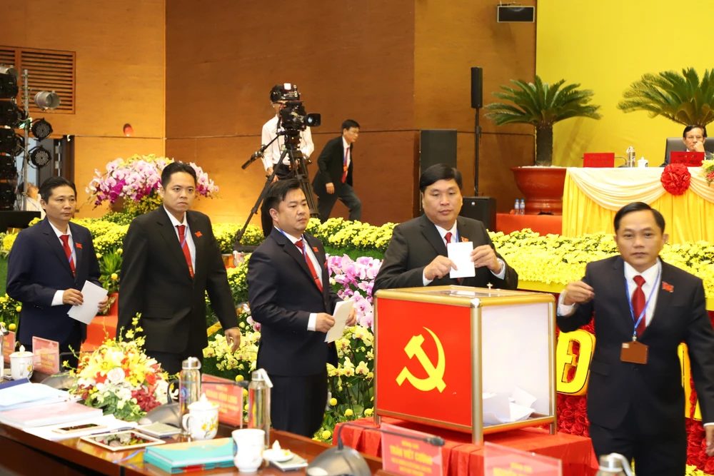 Các đại biểu bầu Ban chấp hành Đảng bộ tỉnh Bình Dương khóa XI. Ảnh: QUỐC CHIẾN