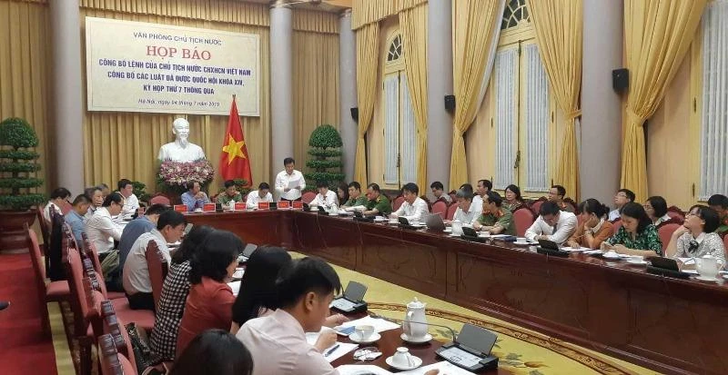 Sáng 4-7, Văn phòng Chủ tịch nước tổ chức họp báo công bố Lệnh của Chủ tịch nước về 7 luật vừa được Quốc hội thông qua tại kỳ họp thứ 7, Quốc hội khóa XIV.