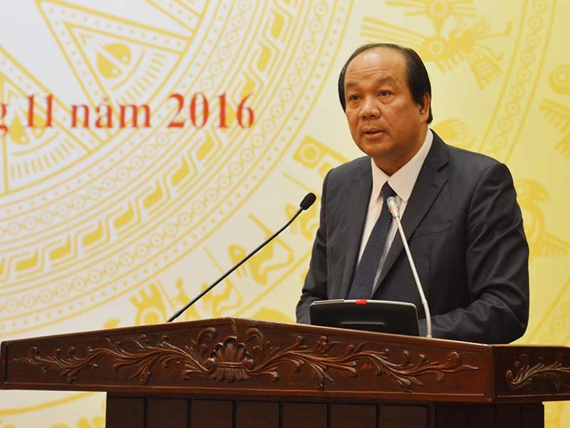 Bộ trưởng Mai Tiến Dũng đang phát biểu tại buổi họp báo. Ảnh: TRÀ PHƯƠNG