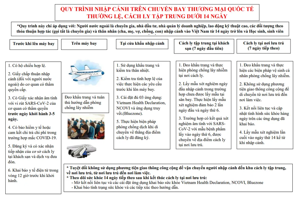 Quy trình nhập cảnh đối với người phải cách ly tập trung 14 ngày. Ảnh: HỒ TRANG
