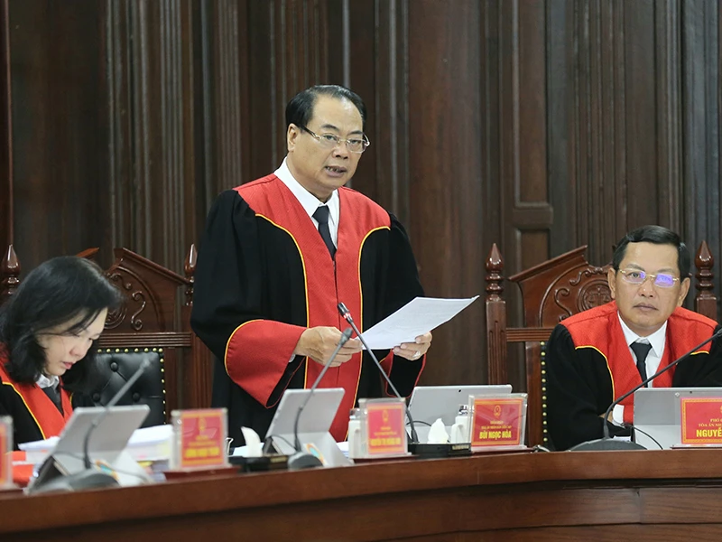 Thẩm phán TAND Tối cao Bùi Ngọc Hòa đọc lại toàn bộ bản án. Ảnh: TTXVN