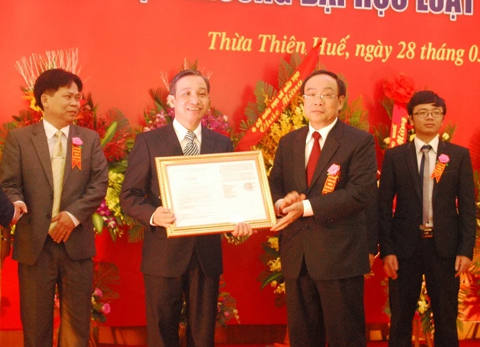 Bên cạnh việc trao quyết định Khoa Luật trở thành Đại học Luật, Đại học Huế cũng trao quyết định hiệu trưởng trường Đại học Luật cho thầy giáo Đoàn Đức Lương.