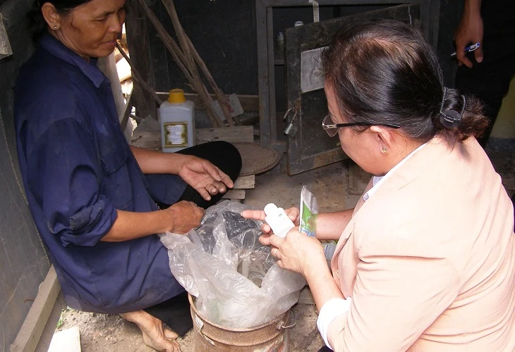 Chi cục BVTV TP.HCM kiểm tra thuốc trừ sâu người trồng rau đã sử dụng. Ảnh: TRẦN NGỌC