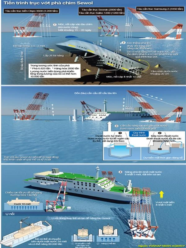 Sơ đồ trục vớt phà chìm Sewol - Đồ họa: Yonhap/Việt Thái