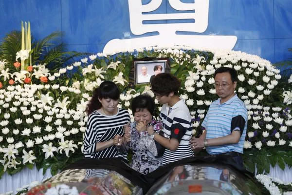 Thân nhân khóc thương bên quan tài các nạn nhân của vụ chìm tàu trên sông Trường Giang ở quận Tiệm Ly, tỉnh Hồ Bắc vào ngày 9-6. (Photo: EPA)