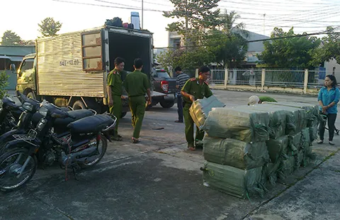 Cơ quan chức năng bắt một vụ thuốc lá lậu. Ảnh: Hoàng Nam