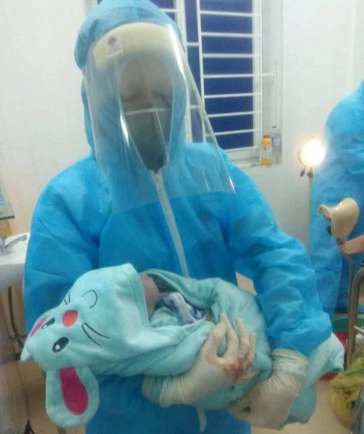 Bé trai chào đời đêm 2-4, trong điều kiện đặc biệt, mẹ đang trong thời gian cách ly ở bệnh viện nên được sinh ở một phòng cách ly riêng. Các y, BS đỡ đẻ cũng đeo khẩu trang, mặc đồ bảo hộ phòng, chống dịch…