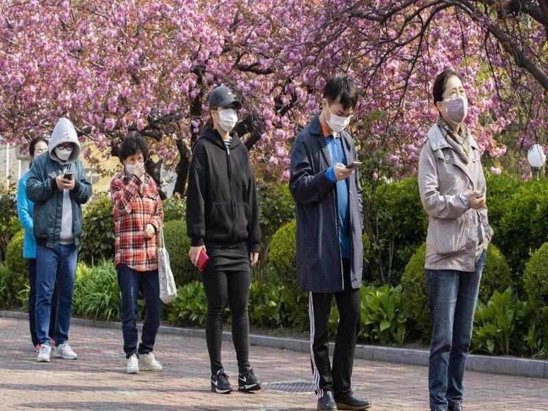 Người dân Hàn Quốc tuân thủ giữ khoảng cách an toàn, đeo khẩu trang kín. Ảnh: XINHUA