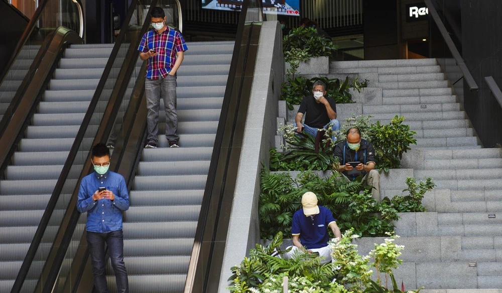 Người Hong Kong đeo khẩu trang khi tới trung tâm thương mại. Ảnh: SCMP