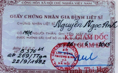 Theo Cựu chiến binh Nguyễn Văn Khả, để có cơ sở pháp lý đưa hài cốt cha của anh Hải về thì phải hội đủ giấy tờ pháp lý, theo đó phải có giấy chứng nhận gia đình liệt sĩ. Để kịp chuyến đi cất bốc hài cốt LS Nguyễn Ngọc Anh vào ngày mùng 6-7 tới, ông Khả đã nhanh chóng làm các giấy tờ giúp gia đình để d8e61n sáng 30-6, ông Khả đã mang đến nhà trao tận tay giấy chứng nhận kể trên cho gia đình anh Nguyễn Ngọc Hải.