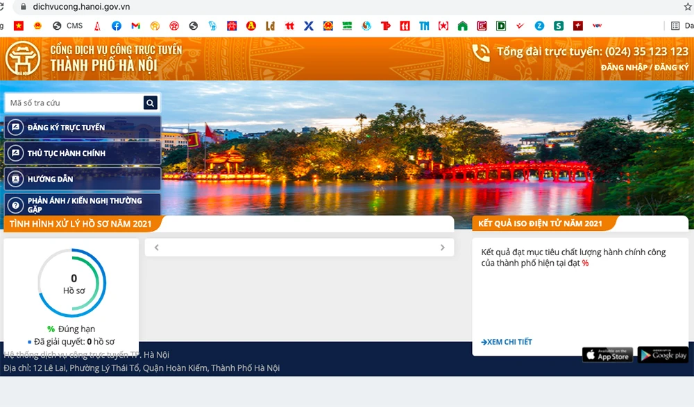 Cổng dịch vụ công trực tuyến của TP Hà Nội đang bị lỗi hai chuyên mục quan trọng đăng ký trực tuyến và thủ tục hành chính