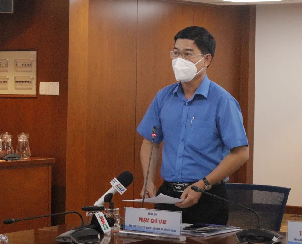 Ông Phạm Chí Tâm, Phó Chủ tịch Liên đoàn Lao động TP.HCM thông tin về các hoạt động chăm lo Tết Nhâm dần cho người lao động. Ảnh: KHÁNH CHI