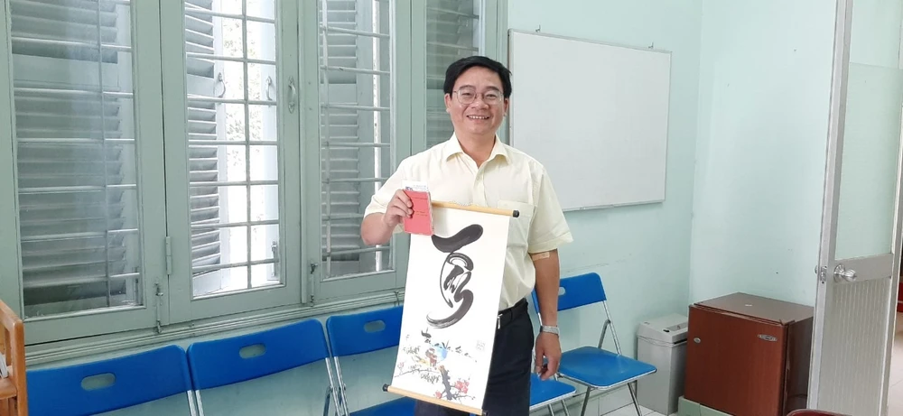 Sau buổi hiến máu, các "ông đồ" trẻ sẽ viết thư pháp tặng mọi người.
