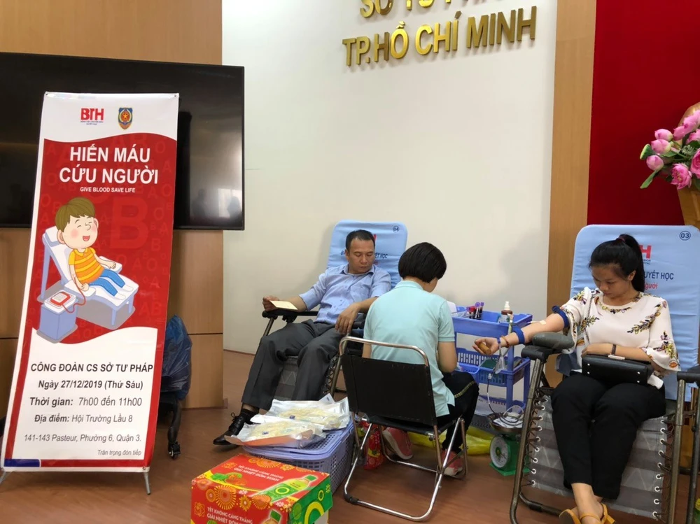 Ngày 27-12, Công đoàn Sở Tư pháp TP.HCM phối hợp với Bệnh viện Truyền máu Huyết học TP.HCM tổ chức đợt hiến máu tình nguyện. Các công đoàn viên đã tham gia hoạt động đầy ý nghĩa này.
