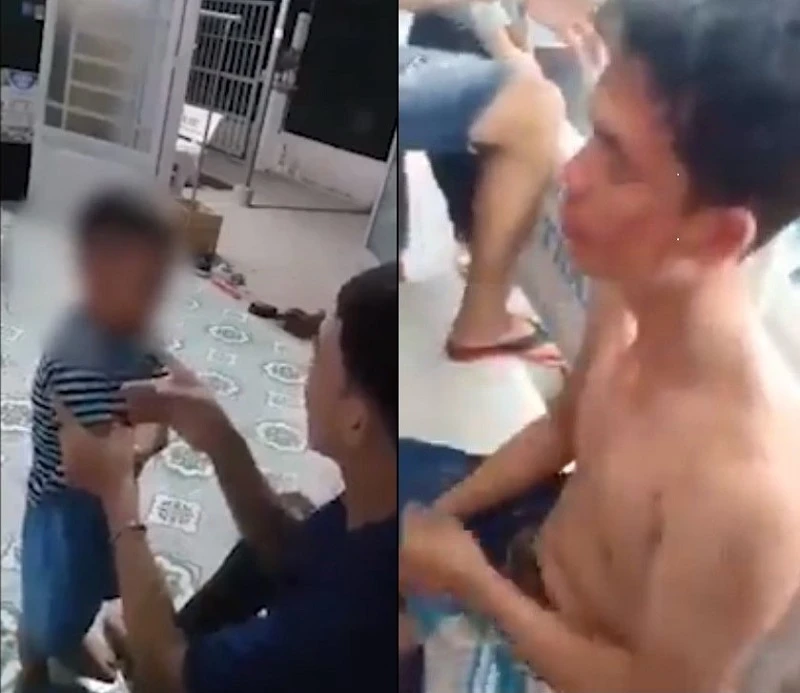 Chiều cùng ngày, một đoạn clip khác được đăng tải ghi lại hình ảnh nhóm đông thanh niên kéo đến khu nhà trọ để anh T. Đám đông đã xông vào nhà bắt và tát vào mặt anh T. như anh đã tát con trai mình cách đây hai năm.