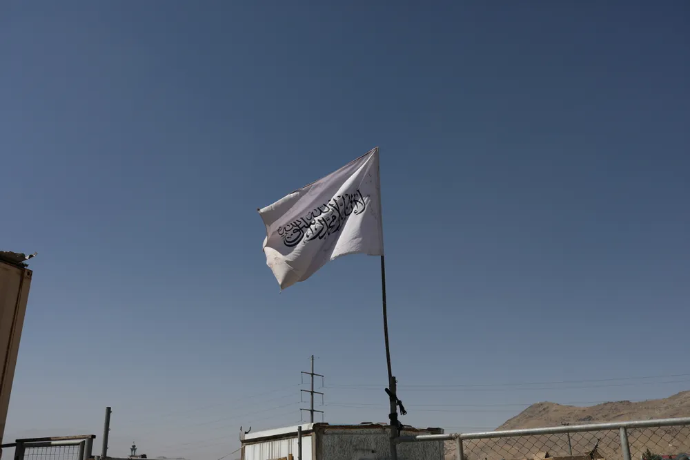 Cờ của Vương quốc Hồi giáo Afghanistan (Taliban) được kéo lên tại sân bay Kabul, ngày 5-9. Ảnh: REUTERS