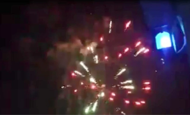Bất chấp lệnh cấm, người dân vẫn ngang nhiên bắn pháo hoa hoành tráng. Ảnh cắt từ Video clip.