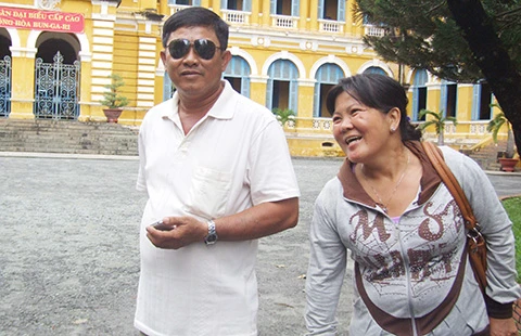 Anh Nguyễn Thanh Cần và vợ trong ngày anh được trả tự do sau 376 ngày tù oan. Ảnh: PHAN THƯƠNG