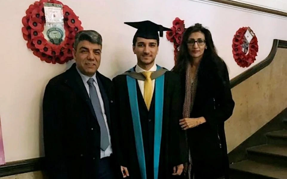 Shekeb Neda (giữa) và cha mẹ của cậu. Ảnh: SWNS