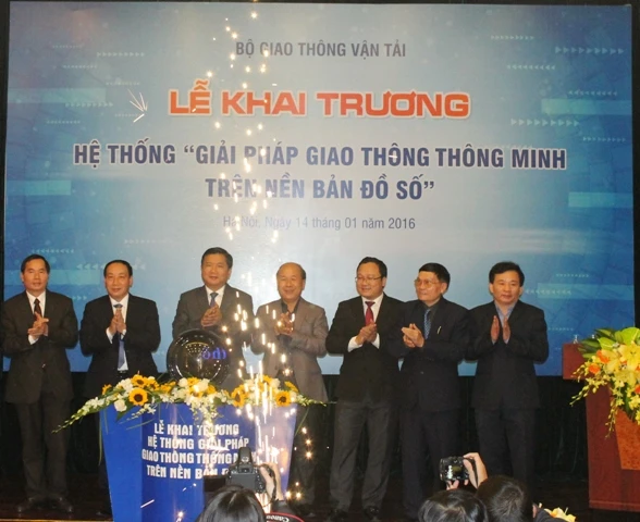 Lãnh đạo Bộ GTVT ấn nút khai trương hệ thống. Ảnh: VIẾT LONG