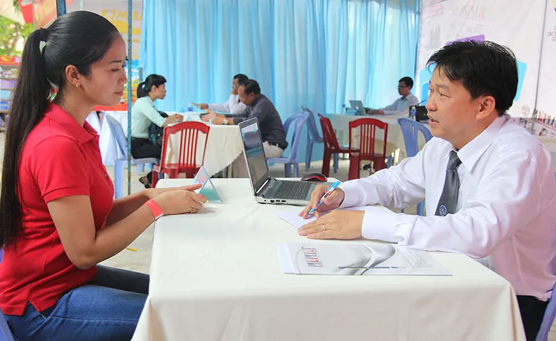 Các công nhân được các luật sư tư vấn pháp luật miễn phí tại ngày hội.