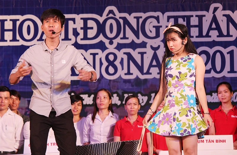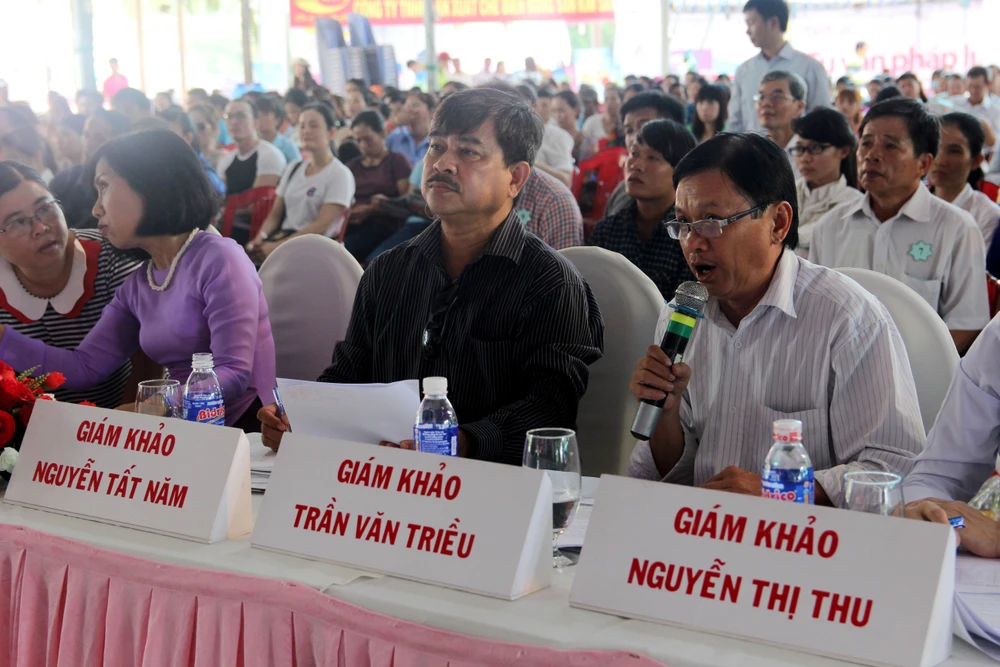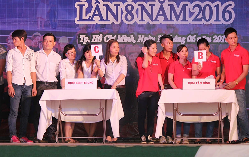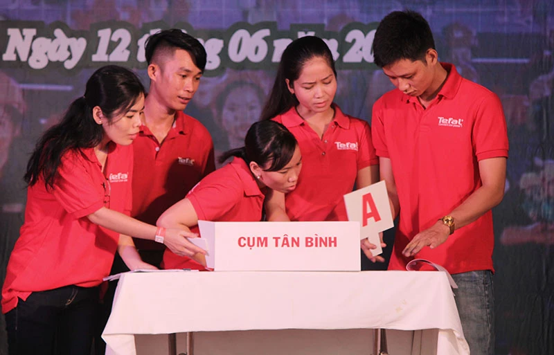Công nhân cụm Tân Bình tham gia phần thi Tìm hiểu pháp luật.