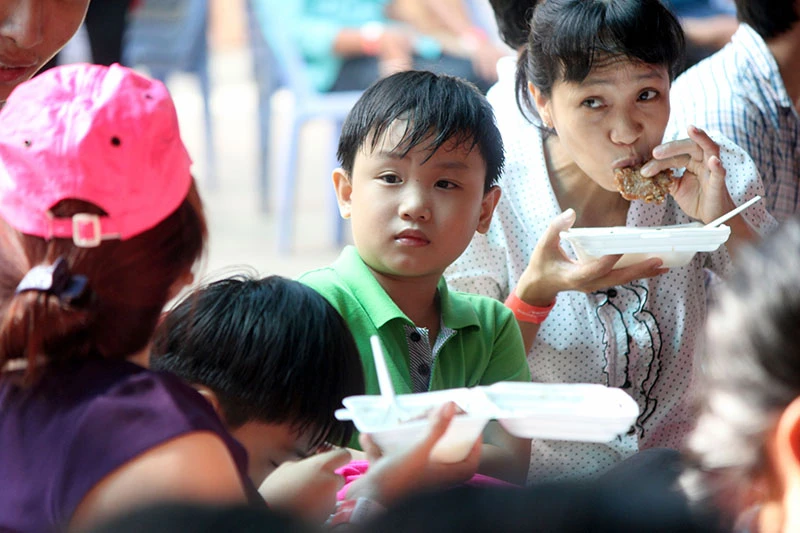 Các công nhân dẫn theo con nhỏ đến tham gia ngày hội.