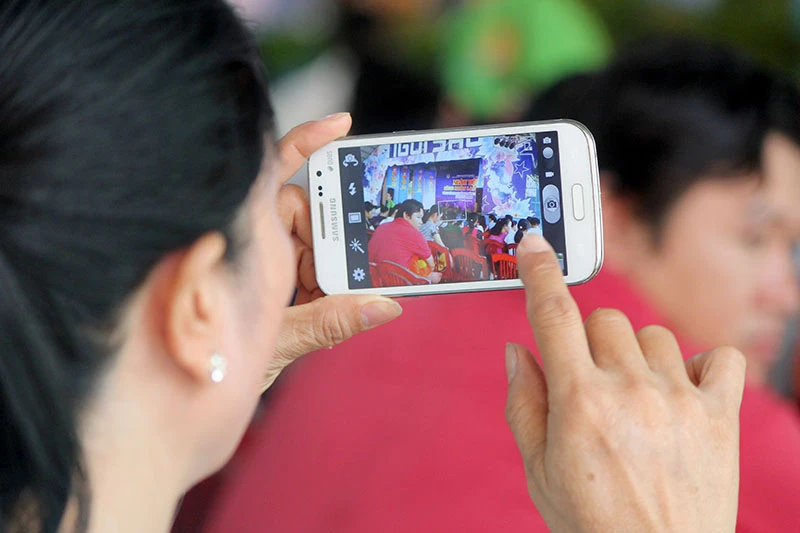 Các công nhân ghi lại những khoảnh khắc trong ngày hội.