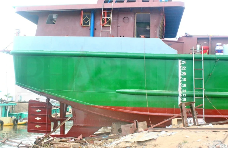 Theo thông tin ban đầu, đầu giờ sáng 28-1, các công nhân làm việc xung quanh sà an, sắp xếp cúng để chuẩn bị hạ thủy. Sà lan lúc này được đặt trên bệ đỡ. Đến khoảng 9 giờ sáng, bất ngờ sà lan bị xô lệch sang một bên. Các công nhân không kịp di chuyển để tránh nên hai người đã bị đè trúng. Một người tử vong tại chỗ, người còn lại bị thương được đưa đi bệnh viện cấp cứu.