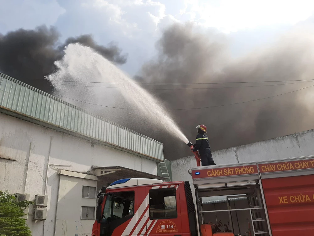Đến tối ngày 22-6, đám cháy lớn xảy ra tại Công ty TNHH sản xuất thương mại L.H., nằm trong KCN Sóng Thần 2 (TX Dĩ An, Bình Dương) đã được khống chế. Hiện lực lượng PCCC vẫn đang phun nước để dập tắt hoàn toàn ngọn lửa.