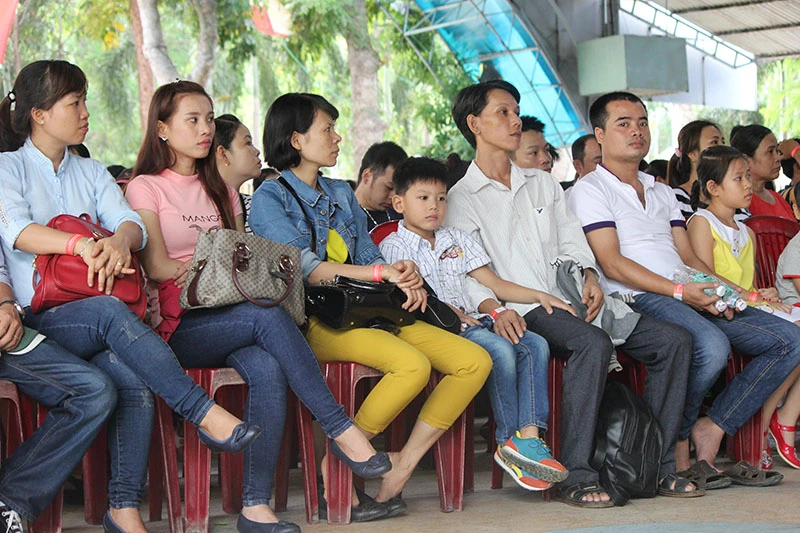 Công nhân đến từ sớm để tham gia ngày hội dành riêng cho mình. Ảnh: HOÀNG GIANG