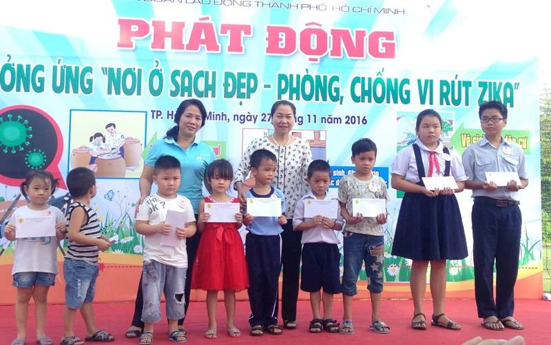Sáng 27-11, Tổng Liên đoàn Lao động Việt Nam (LĐLĐ) cùng LĐLĐ TP.HCM tổ chức lễ phát động “Nơi ở sạch đẹp - Phòng, chống vi rút Zika". Lễ phát động với sự tham gia của 200 công nhân lao động lưu trú tại khu nhà trọ số 1155/3/7 (khu phố 2, phường Bình Chiểu, quận Thủ Đức) cùng ngành y tế, Quỹ tấm lòng vàng Lao Động, Quỹ bảo trợ trẻ em Công đoàn Việt Nam.