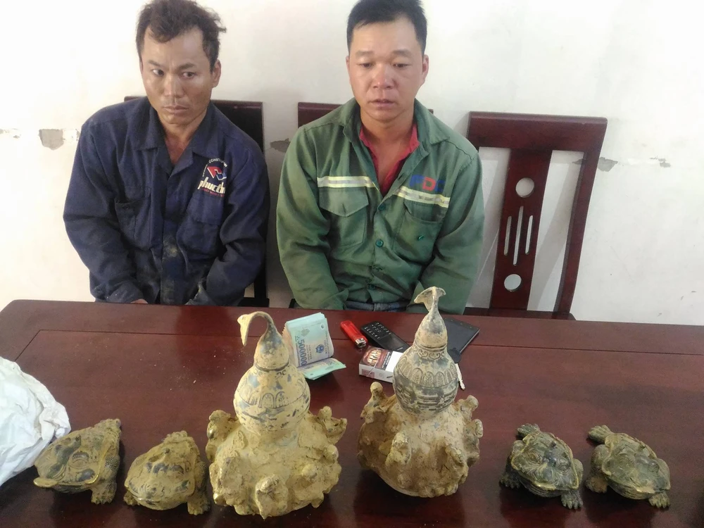 Trưa 7-8, Hải và Phờ mặc quần áo công nhân đến quầy hàng tạp hóa của chị Hiền (ở xã Châu Khê, huyện Con Cuông) nói: Ai có nhu cầu mua đồ cổ không, bọn em mới đào được, nếu đưa đồ vật quý đi trong người sợ kiêng và sợ bị công an gọi hỏi. Hải và Phờ đưa ra hai bộ bát tiên và 4 con cóc ngậm tiền xu lấm lem bùn đất. Chị Hiền cảnh giác không mua và bí mật gọi điện báo công an kiểm tra, bắt giữ Hải và Phờ. Công an cũng thu giữ tang vật nêu trên và hơn 36 triệu đồng.